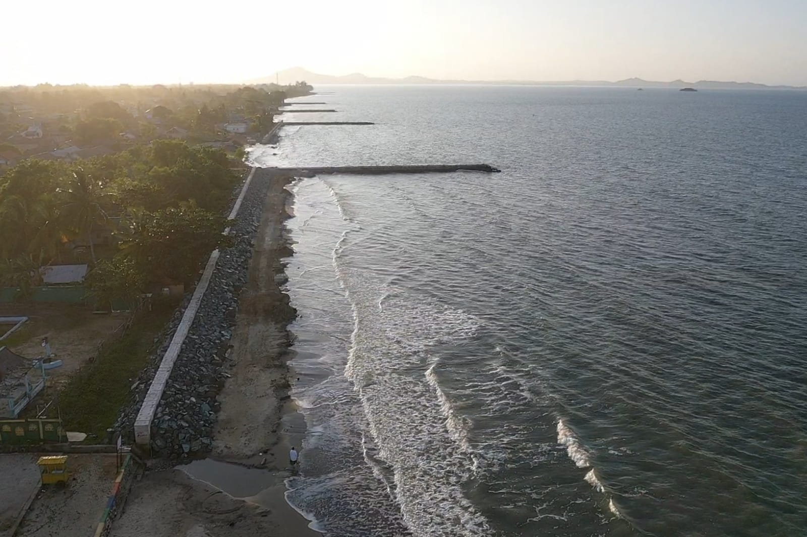 “Setelah pengaman pantai terbangun, akan sangat aman meski diterjang gelombang pasang karena bangunan sudah di lindungi siring pengaman,” lebih dia.